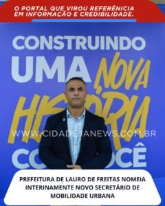 O novo secretário interino assume a SEMOB em um momento de constantes desafios urbanos, onde a mobilidade eficiente e segura é uma das principais demandas da população de Lauro de Freitas. Desde 30 de junho, a SEMOB estava interinamente sob o comando de Glauber Moraes, que continua como titular da Secretaria Municipal de Segurança, Defesa Civil e Ordem Pública (SSPLF).