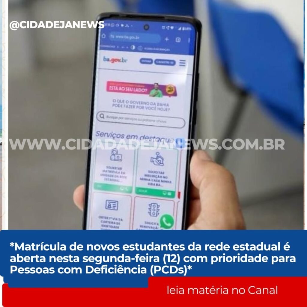 *Matrícula de novos estudantes da rede estadual é aberta nesta segunda-feira (12) com prioridade para Pessoas com Deficiência (PCDs)*