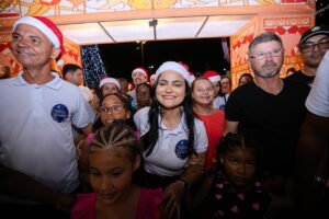 Visivelmente emocionada, a prefeita Débora Regis destacou que o Natal Mágico simboliza a virada de página que a cidade atravessa. “Foi um ano desafiador, mas em menos de um ano a gente começa a devolver a dignidade. Este é fruto de um trabalho duro para tirar a cidade de um atraso de 20 anos. Já temos vitórias e vamos fazer mais para impactar a vida de cada um de vocês”, afirmou a gestora, sob aplausos.