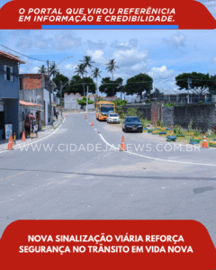 Nesta terça-feira (9/12), a Prefeitura de Lauro de Freitas, por meio da Secretaria Municipal de Mobilidade Urbana (SEMOB), realizou uma nova etapa de sinalização viária no bairro de Vida Nova, com o objetivo de aprimorar a segurança no trânsito e proteger vidas.
